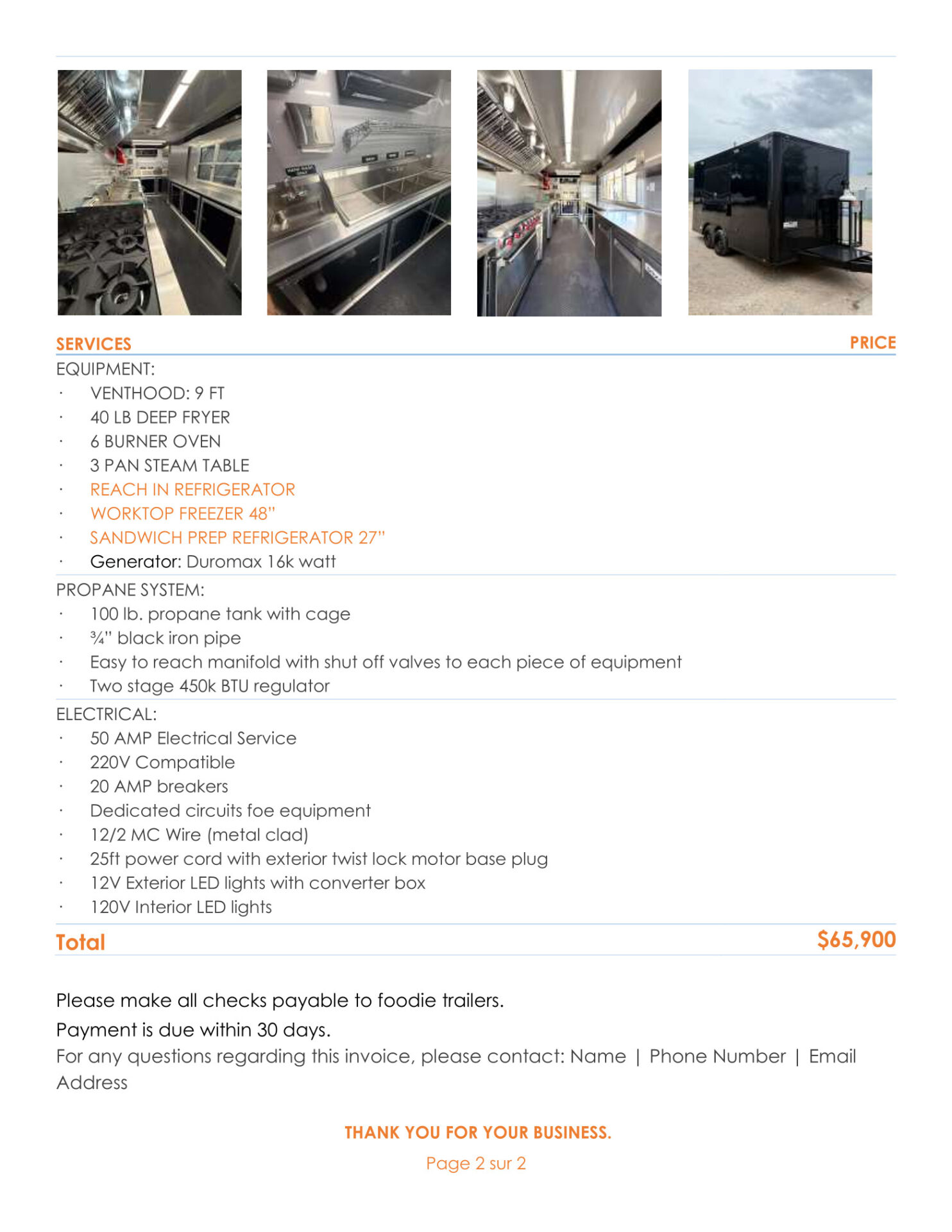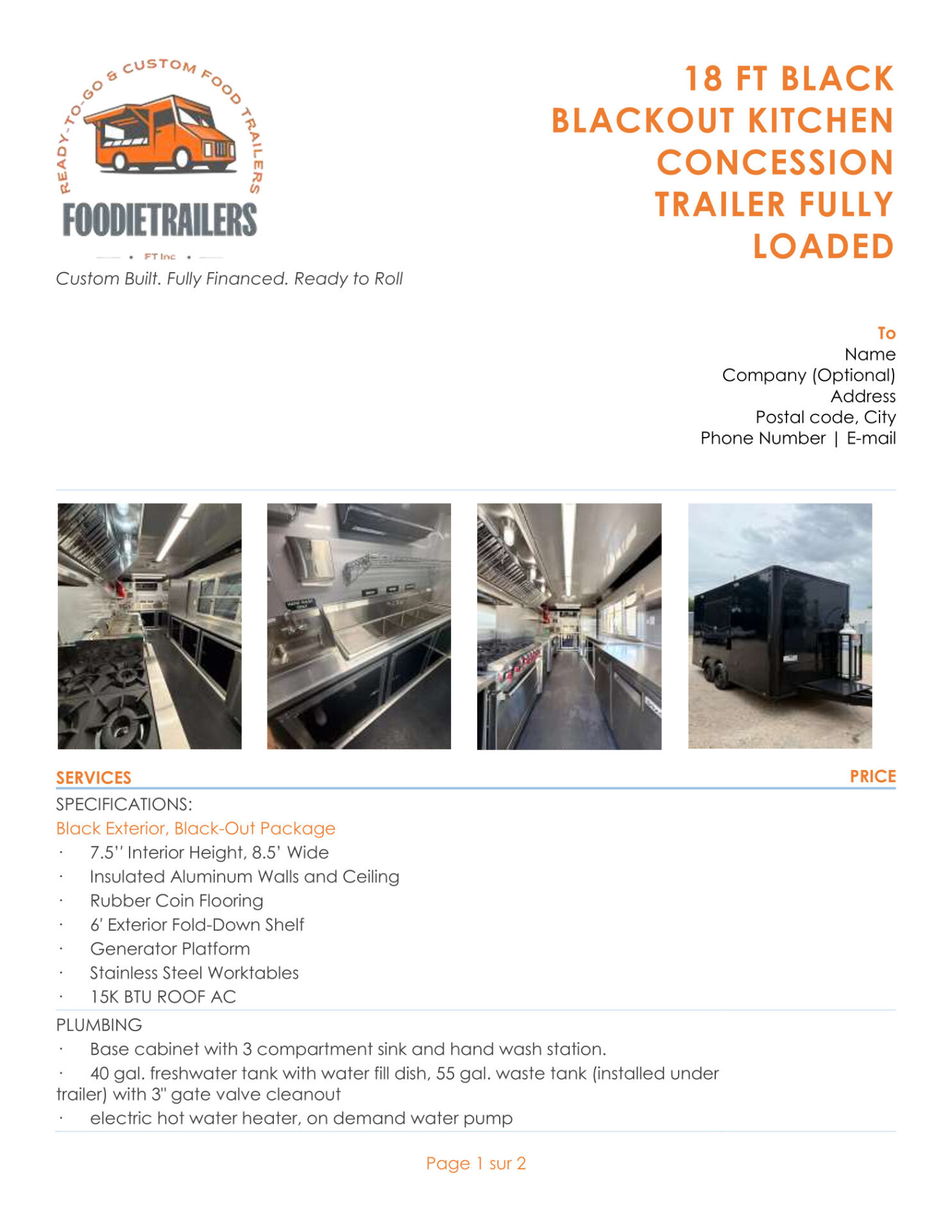 · 40 gal. freshwater tank with water fill dish, 55 gal. waste tank (installed under trailer) with 3″ gate valve cleanout